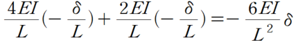 이제 양끝단에 모멘트가 작용했을때의 유연도를 활용하여 양끝단 회전각을 산정하면 다음과 같습니다.