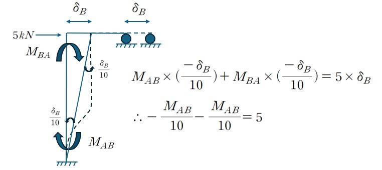- 자유도 θb 에 대한 가상 변위의 법칙은 다음과 같습니다. 이는 평형방정식과 일치하게 됩니다.