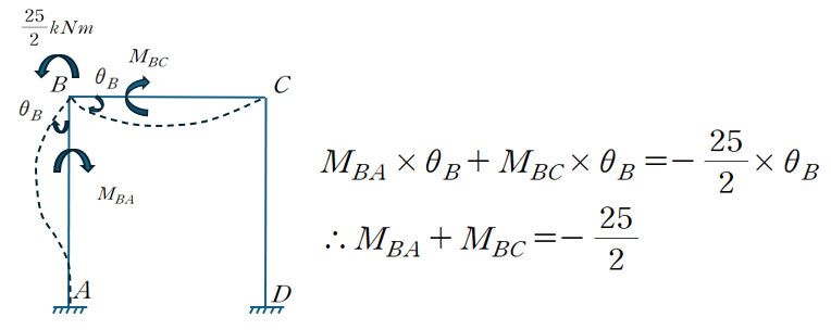 구성방정식에서 모든 내력은 미지수 두개 θB 와 δB로 표현되었습니다.