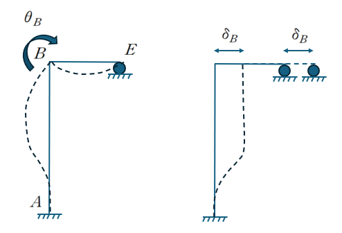 두개의 자유도는 B지점의 회전량과 B지점에서의 수평변위 (Side Sway DOF)입니다.