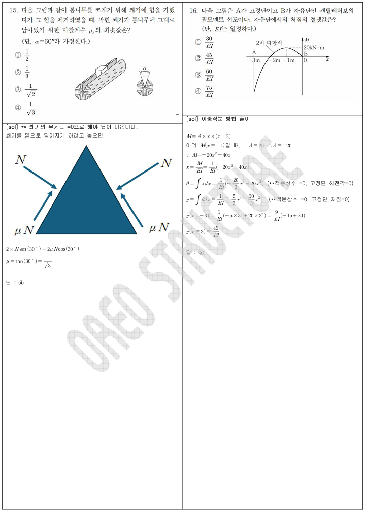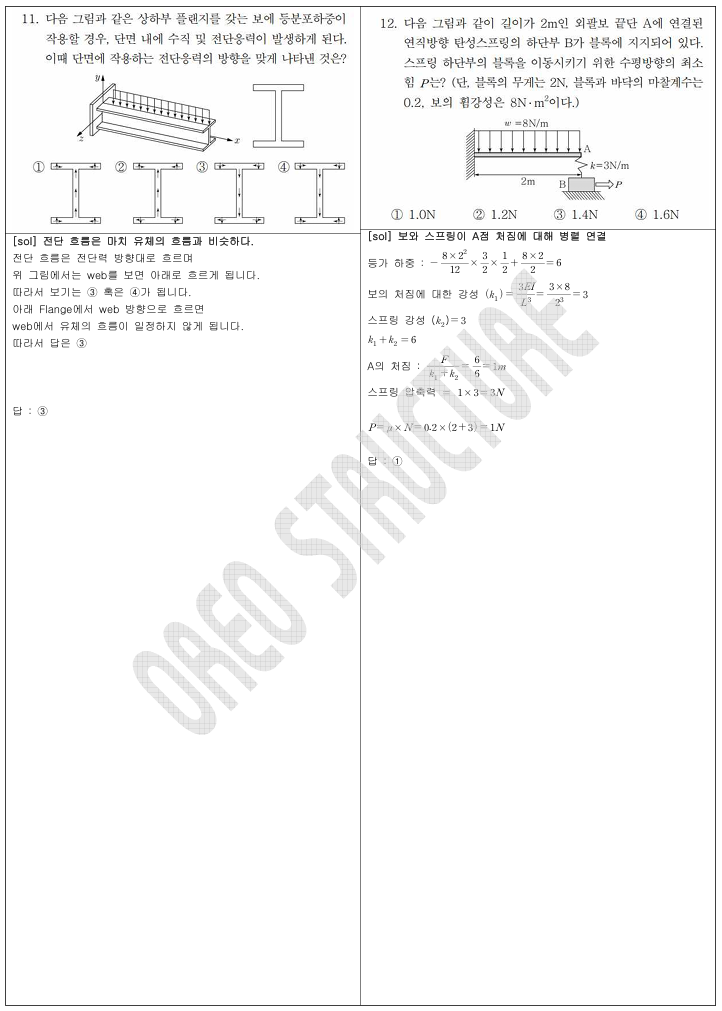 - 2번 문항은 구조의 안정·불안정·중립평형 (좌굴 개념)이 잡혀 있지 않으면 혼돈을 줄것입니다.
