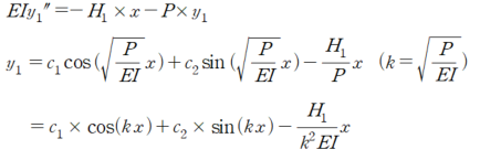 아랫 기둥에 대해 다음과 같이 미분 방정식을 세울 수 있습니다.