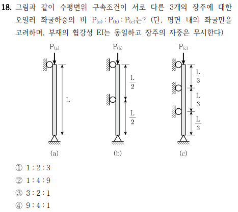 해당 문항 자체는 단순히 유효좌굴길이(Effective Length) 를 적용하면 쉽게 풀리는 문제였습니다.