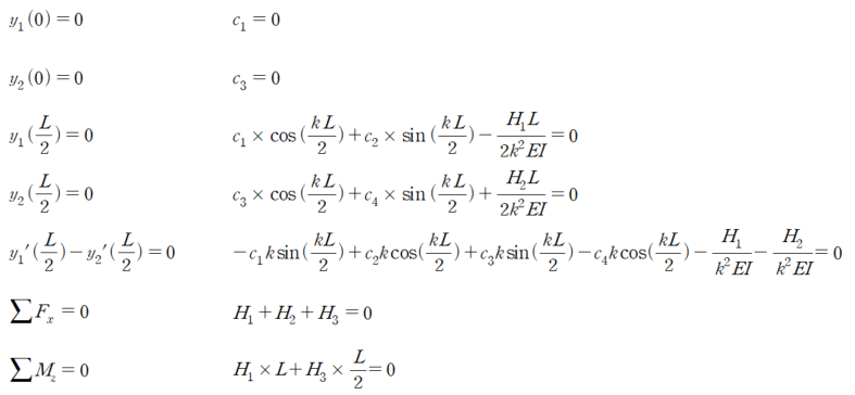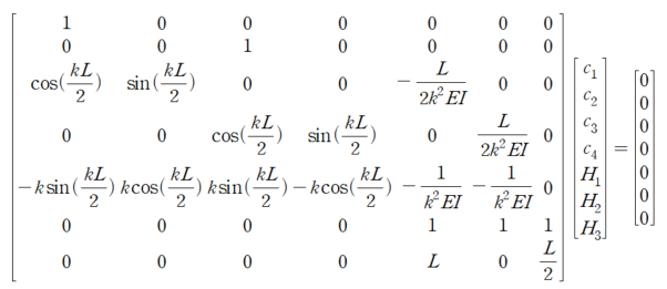 붉은색 Box의 값이 0이 되는 값은 kL=3π 일 때 입니다. Pin-Pin 좌굴에서 3번째 모드와 동일합니다.