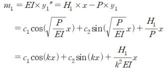 아랫 기둥의 미분방정식은 다음과 같이 세울 수 있습니다.