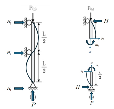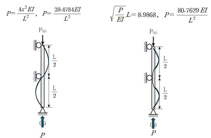 따라서 (b)기둥의 2번째 mode 좌굴하중값은 다음 구조물의 좌굴하중과 일치하게 됩니다.