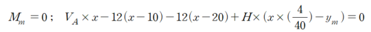 이때 m 지점에서의 모멘트 식을 세우고 해당 값이 0이라는 식을 세우면 다음과 같습니다.
