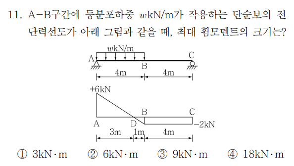 시험에서도 최대모멘트를 묻는다면 자연스럽게 전단력이 0인 위치를 찾는 흐름으로 접근하게 됩니다.