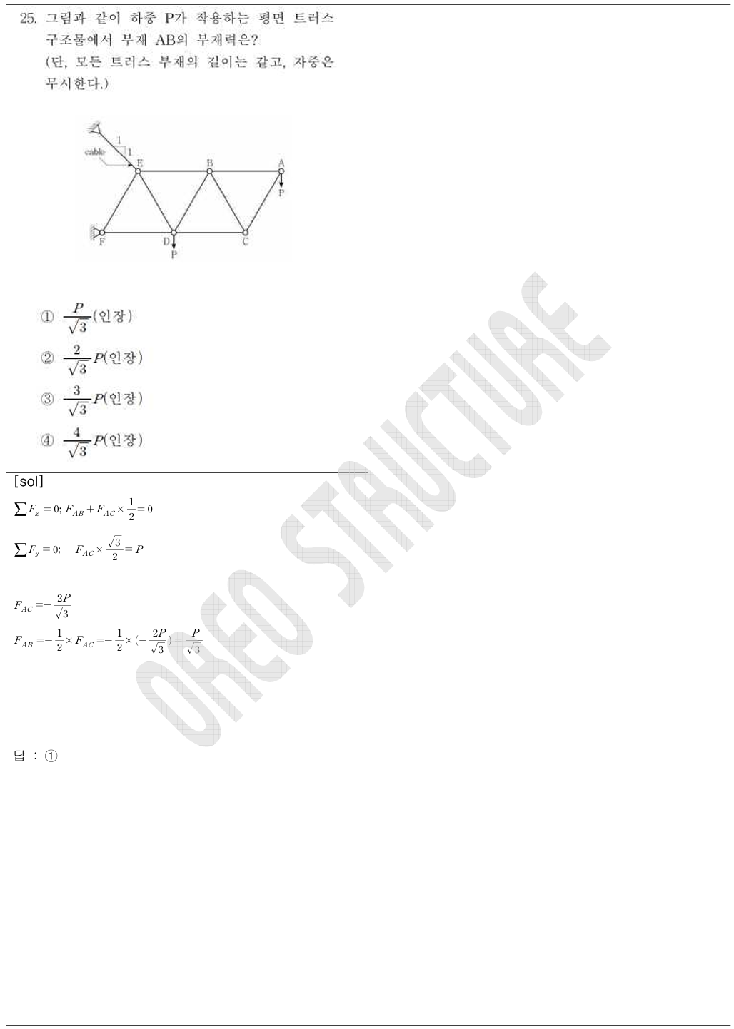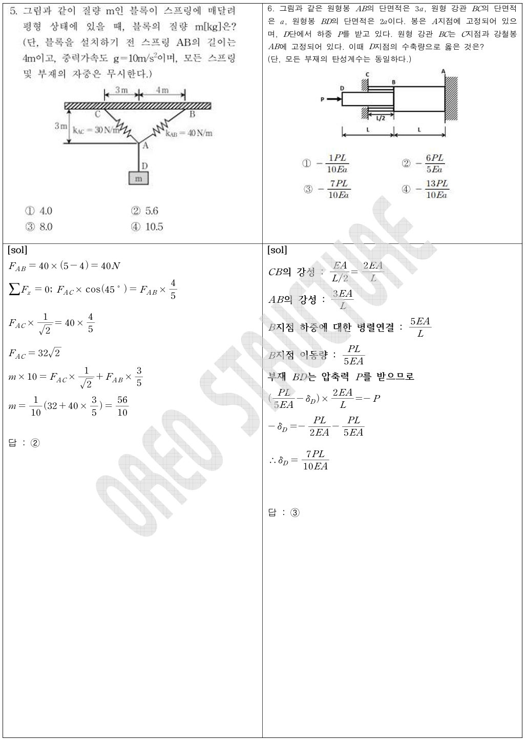 시험 난이도에 대해서는, 응용역학의 전형적인 유형에 익숙한 분들이라면 이번 시험 역시 기존 흐름에서 크게 벗어나지 않는, 비교적 평이한 난이도로 느끼셨을 것 같습니다. 심지어 몇몇 문항은 과거 기출과 거의 동일한 수준이었습니다.