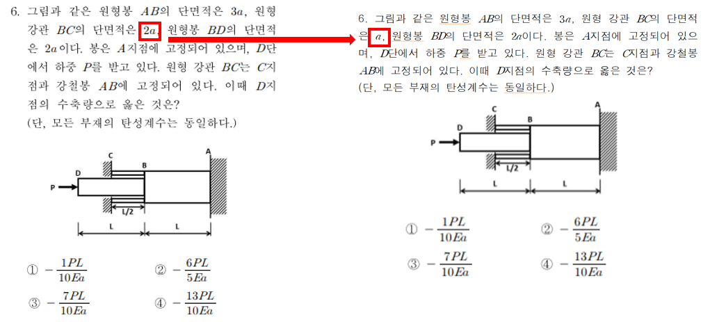 원 문제 File에 나온대로 BC의 단면적을 2a로 한다면 답은 : -9PL/14EA 로 보기에 존재하지 않습니다.