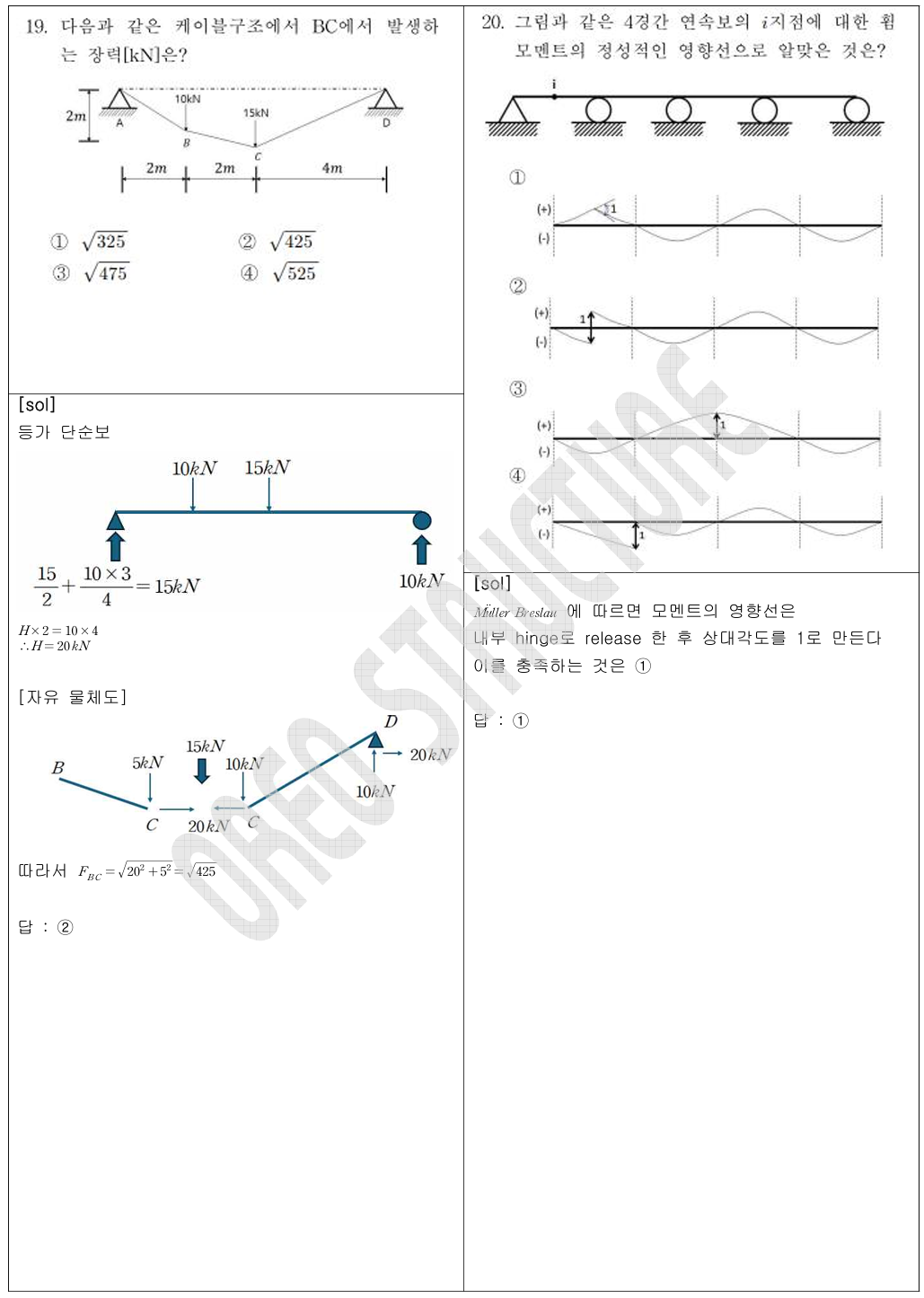 19 (케이블 기본정리), 20(뮐러 브레스라우의 기본 이론), 21(처짐각법 기본), 22(영구변형),