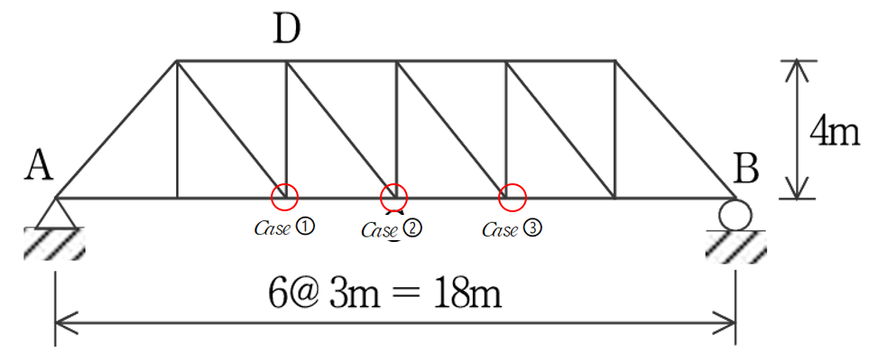 이번 트러스 문제는 문항에 적힌 “집중하중이 이동할 때”라는 표현만 보아도 알 수 있듯이,