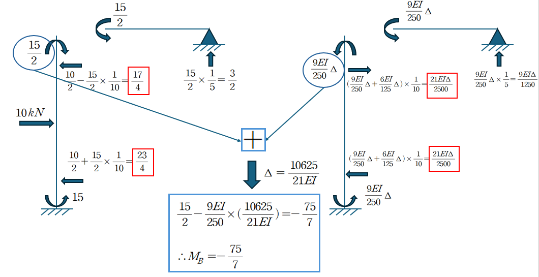 위에 서술한 대로 두 Case의 결과를 중첩하되 Sway에 대해 저항하는 전단력이 0이 되도록 하는 Δ를 산정해줘야 합니다.