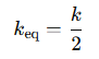 2개의 동일한 스프링이 직렬 연결되었기 때문에, 위 그림과 같이 등가 강성도를 손쉽게 산정할 수 있습니다.