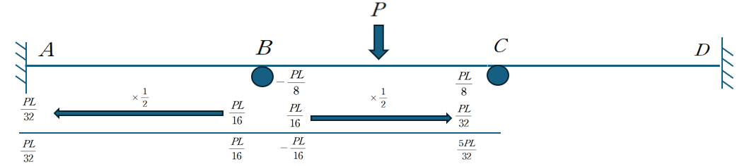 C절점에서 불균일 모멘트가 5PL/32 만큼 발생한 것을 확인 할 수 있습니다.