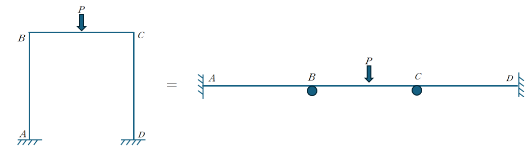 Sway가 없으므로 해당 프레임 구조물은 3개의 연속된 보부재의 연결로 볼 수 있습니다.
