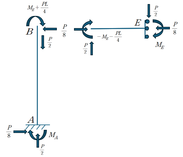 E가 자유단이라고 한다면 ABE는 전체적으로 캔틸레버 정정구조물과 같은 형태를 띄게 되기 때문입니다.