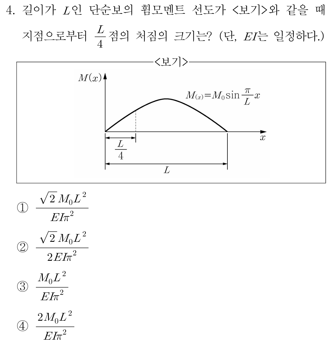 문제에서 L/4 지점의 처짐을 구하라고 하고 있습니다.
