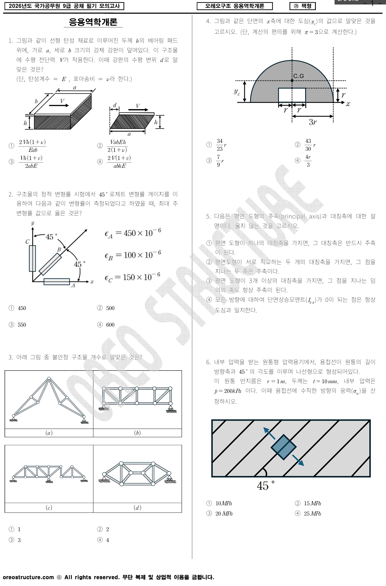 오레오 구조 응용역학개론 모의고사 2회