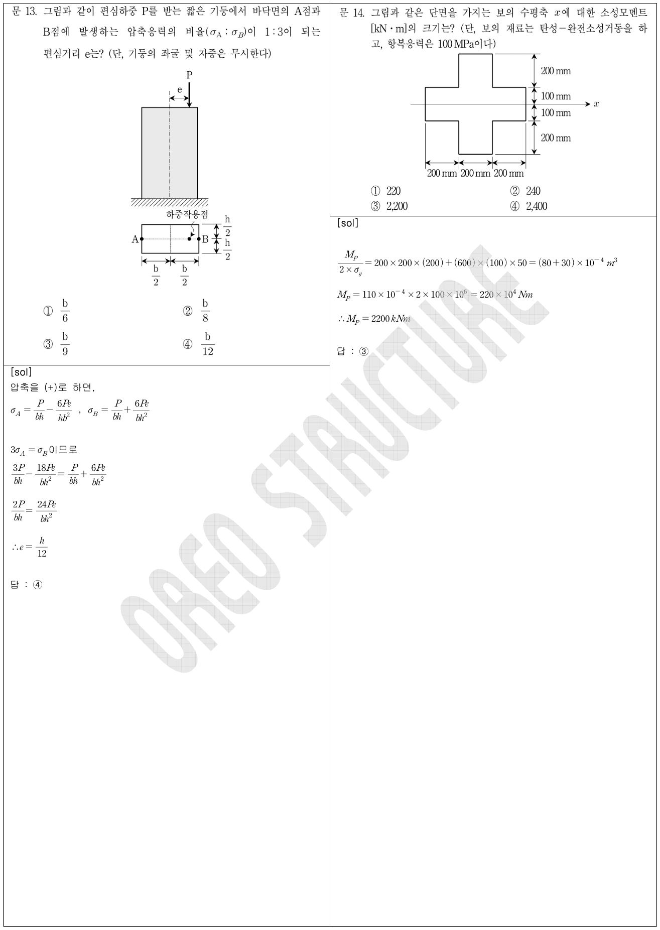 14 (소성모멘트 구하기 : 결국 단면 1차 모멘트 접근), 16 (조합하중-최대주응력),
