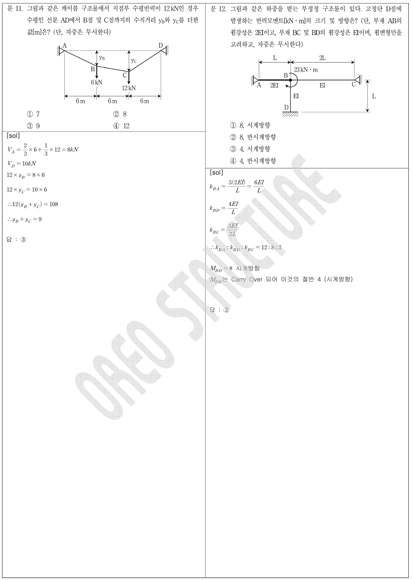 10 (축부재 병렬연결), 11 (케이블 기본정리), 12 (모멘트 분배법), 13 (조합하중)