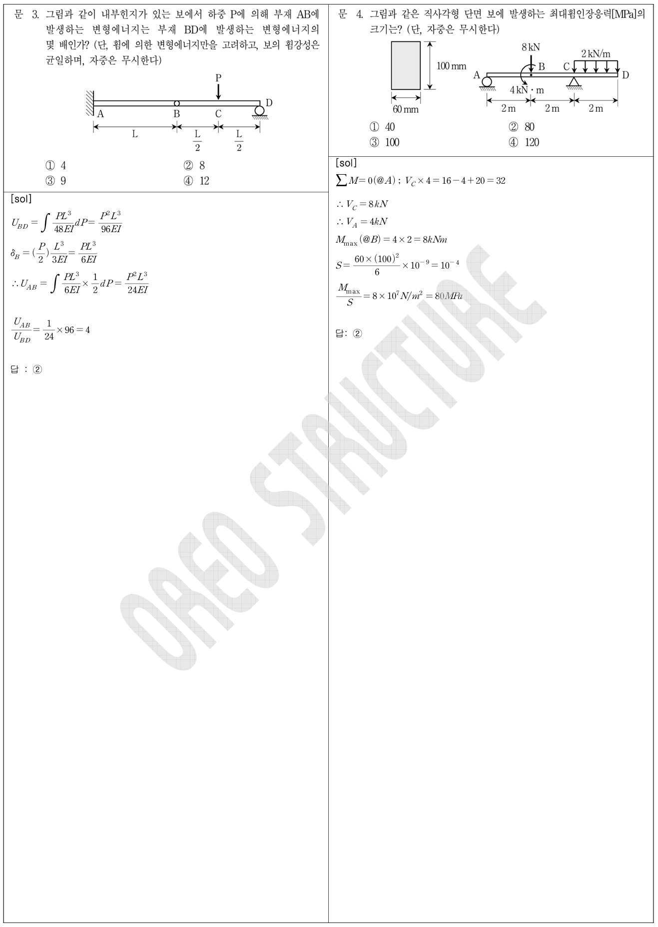 - 2 (평형방정식, 정역학), 3 (변형에너지 : 카스틸리아노 역이용), 4 (휨응력)