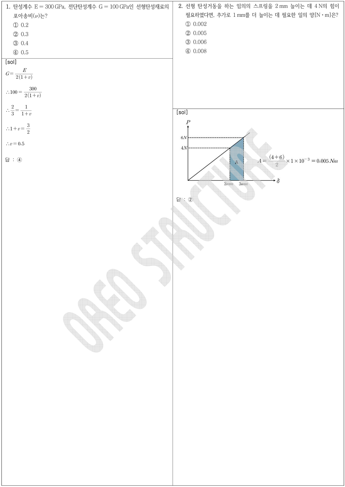- 1 (포아송비와 전단탄성계수 기본), 2 (힘과 일의 기본), 3 (중립축 정리 기본),