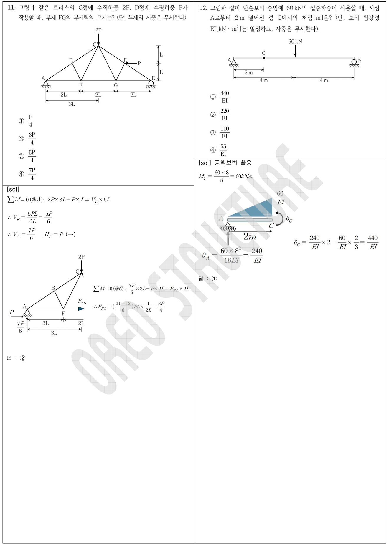 8(재료의 특성 기본 개념), 11 (트러스 단면법), 12(공액보법 기본),