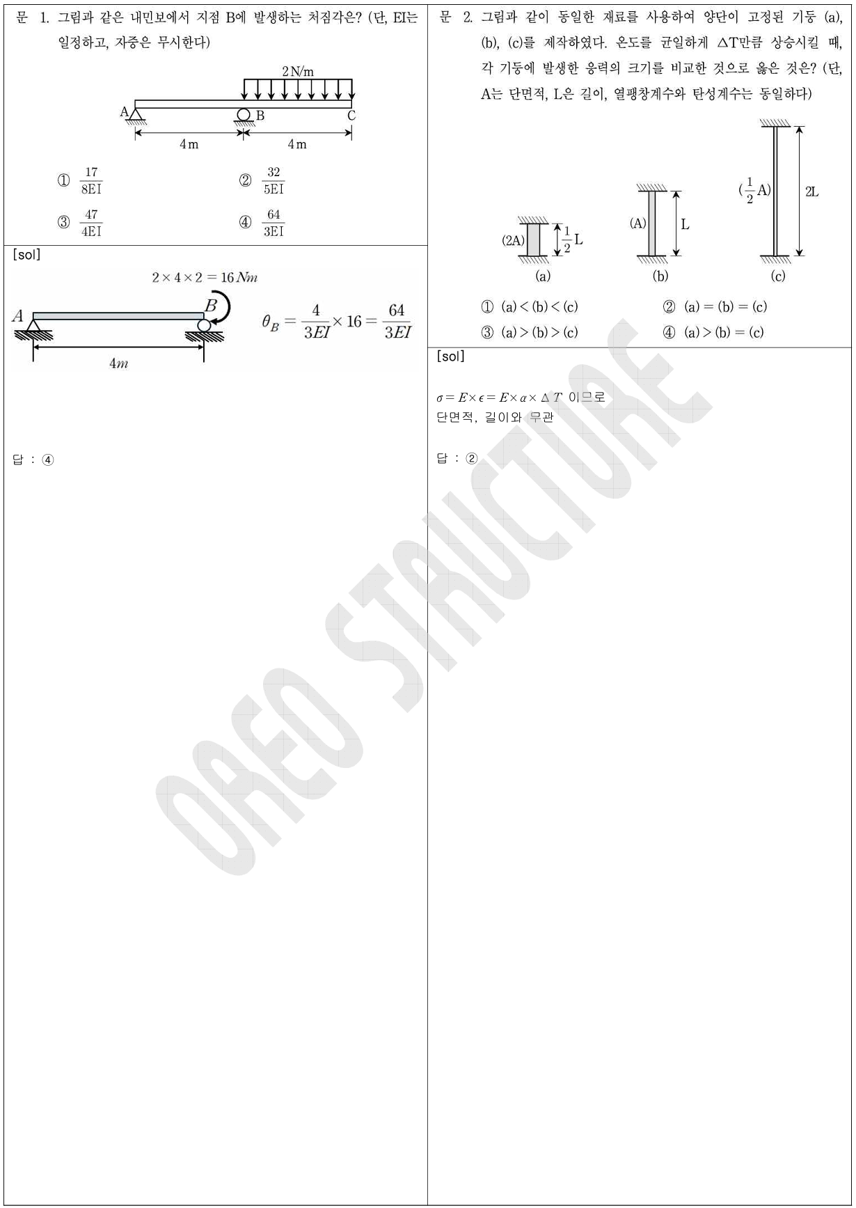 예를 들어 처짐 문제를 에너지법이나 공액보법만으로 접근하는 수험생의 경우 1번 문제를 어렵게 느끼는 경향이 있으나, 처짐각법을 알고 있다면 매우 간단하게 해결할 수 있습니다.