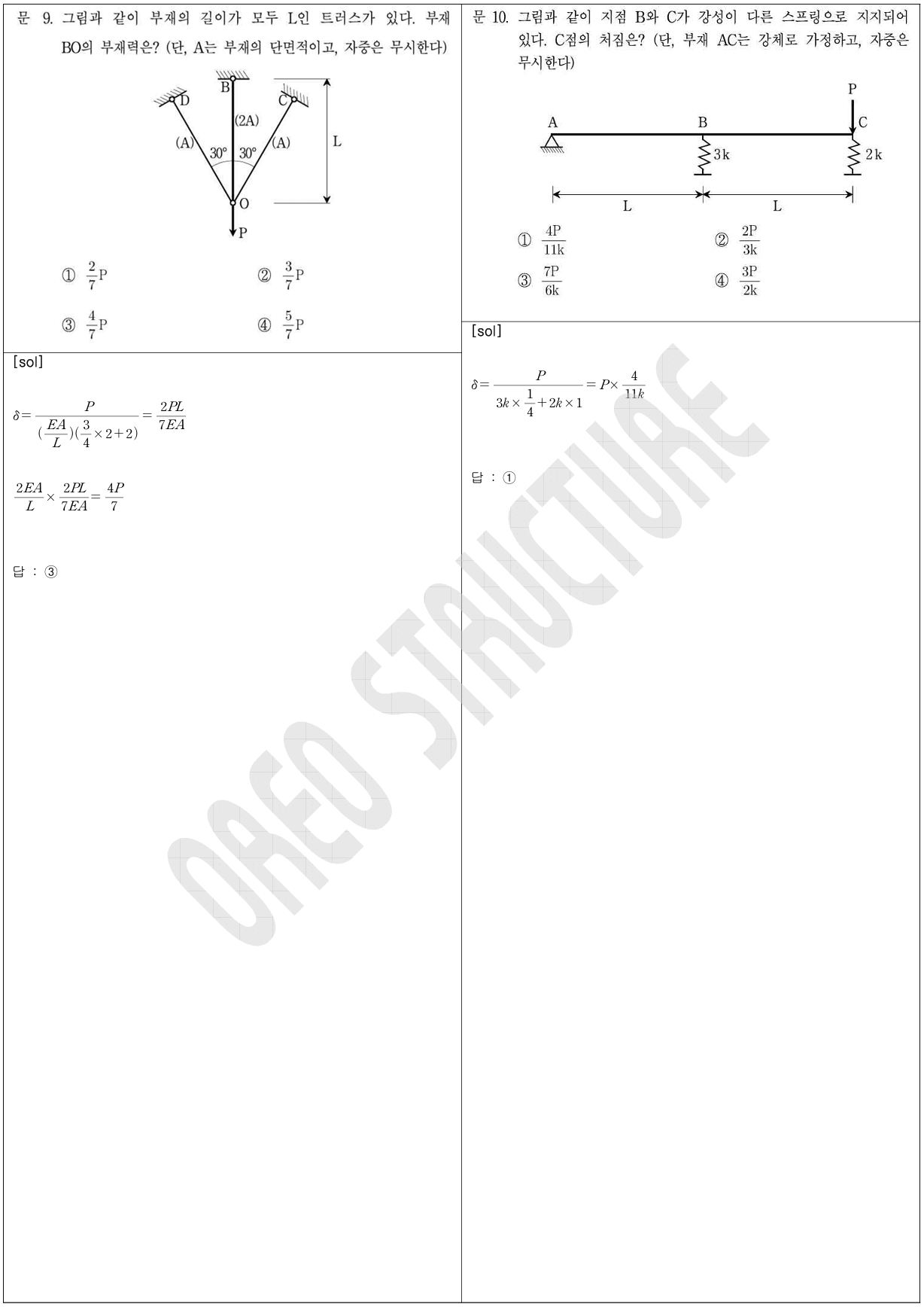 6번과 8번은 자주 출제되는 유형은 아니지만 응력 개념을 정리하기에 좋은 문제였고, 9번과 10번에서 단자유도 문제 장치를 연속으로 출제한 점도 특징적이었습니다.