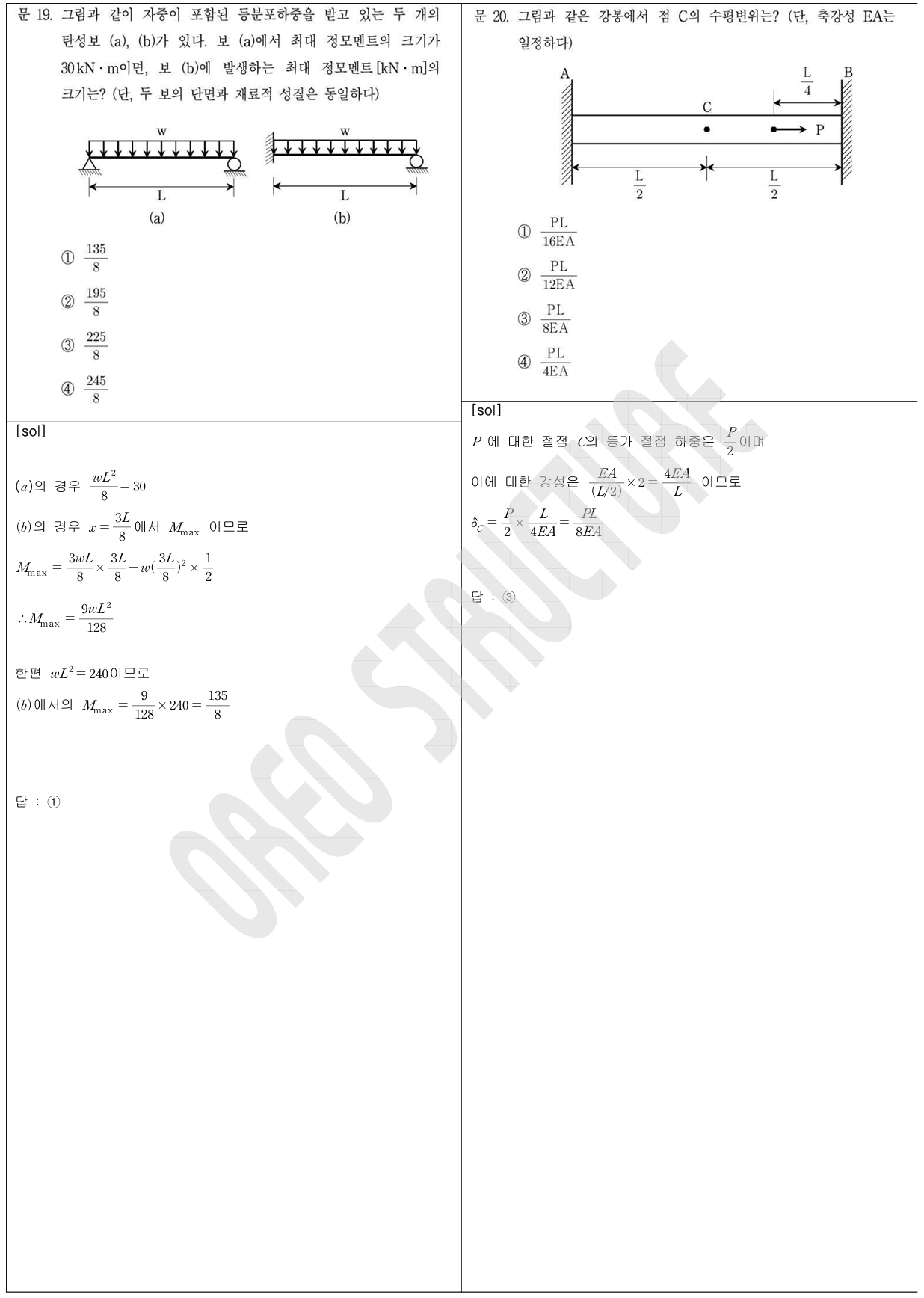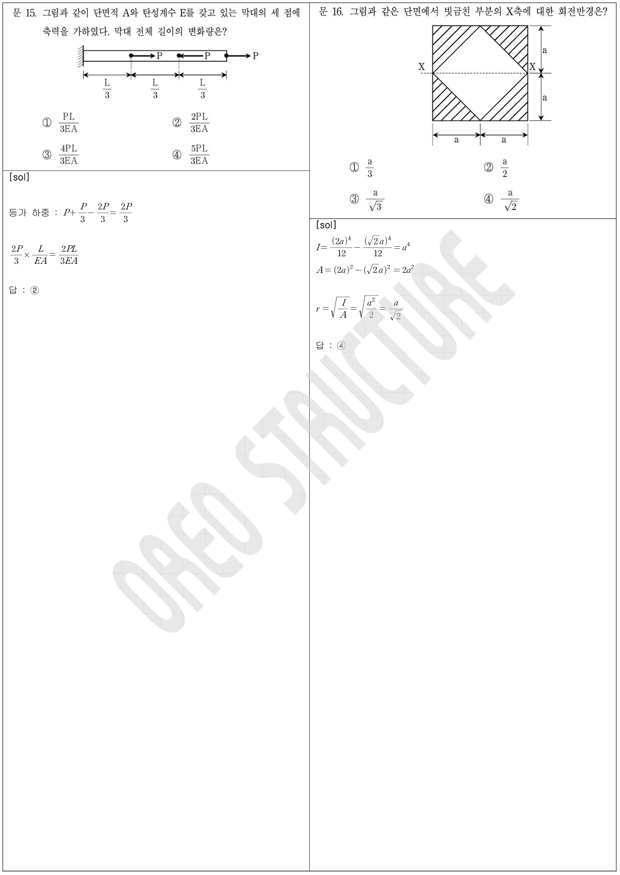 16번은 정다각형 단면이 회전해도 단면2차모멘트가 변하지 않는다는 기본 개념을 이해하지 못하면 어렵게 느껴질 수 있는 문제였습니다.