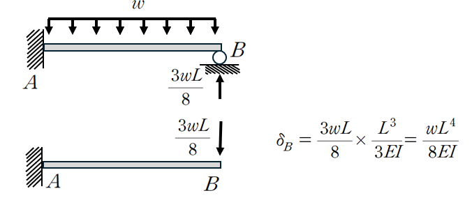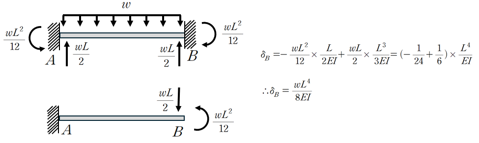 자유단에서의 처짐은 등가 절점하중을 활용해서도 쉽게 산정할 수 있습니다