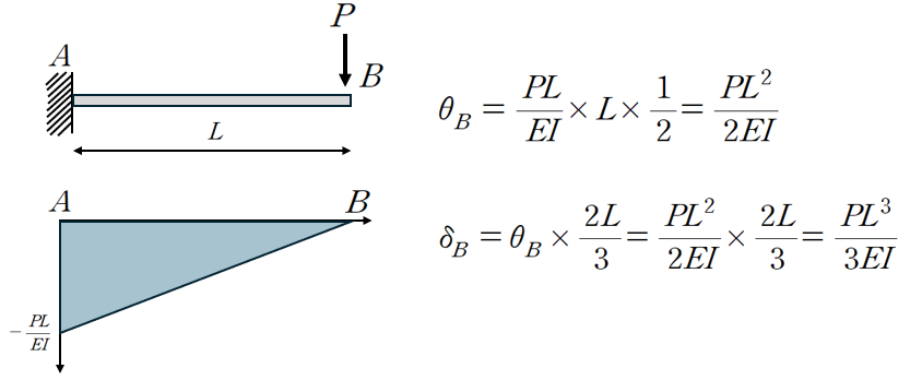 캔틸레버에서의 회전각과 처짐량을 산정하는데 두가지의 중요한 원칙을 기억하셔야 합니다.
