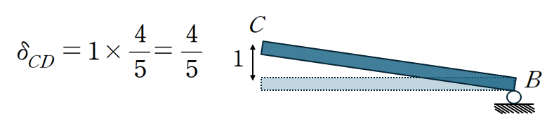 따라서 C에서 변형 1은 부재 CD에 4/5 만큼의 변형을 가져다 줍니다.