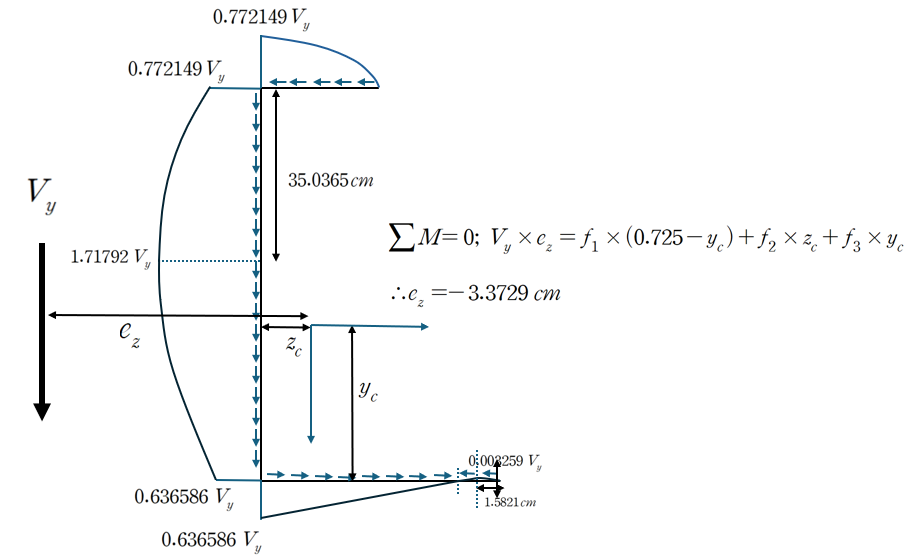 ② Vy에 대한 전단흐름과 전단 중심