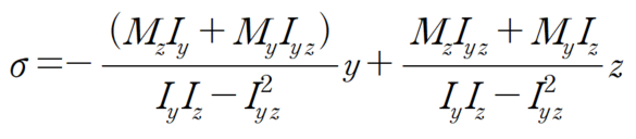 우리가 알고 있는 σ=M ×y /I 의 확장되고 일반화 된 공식이라고 보시면 됩니다.