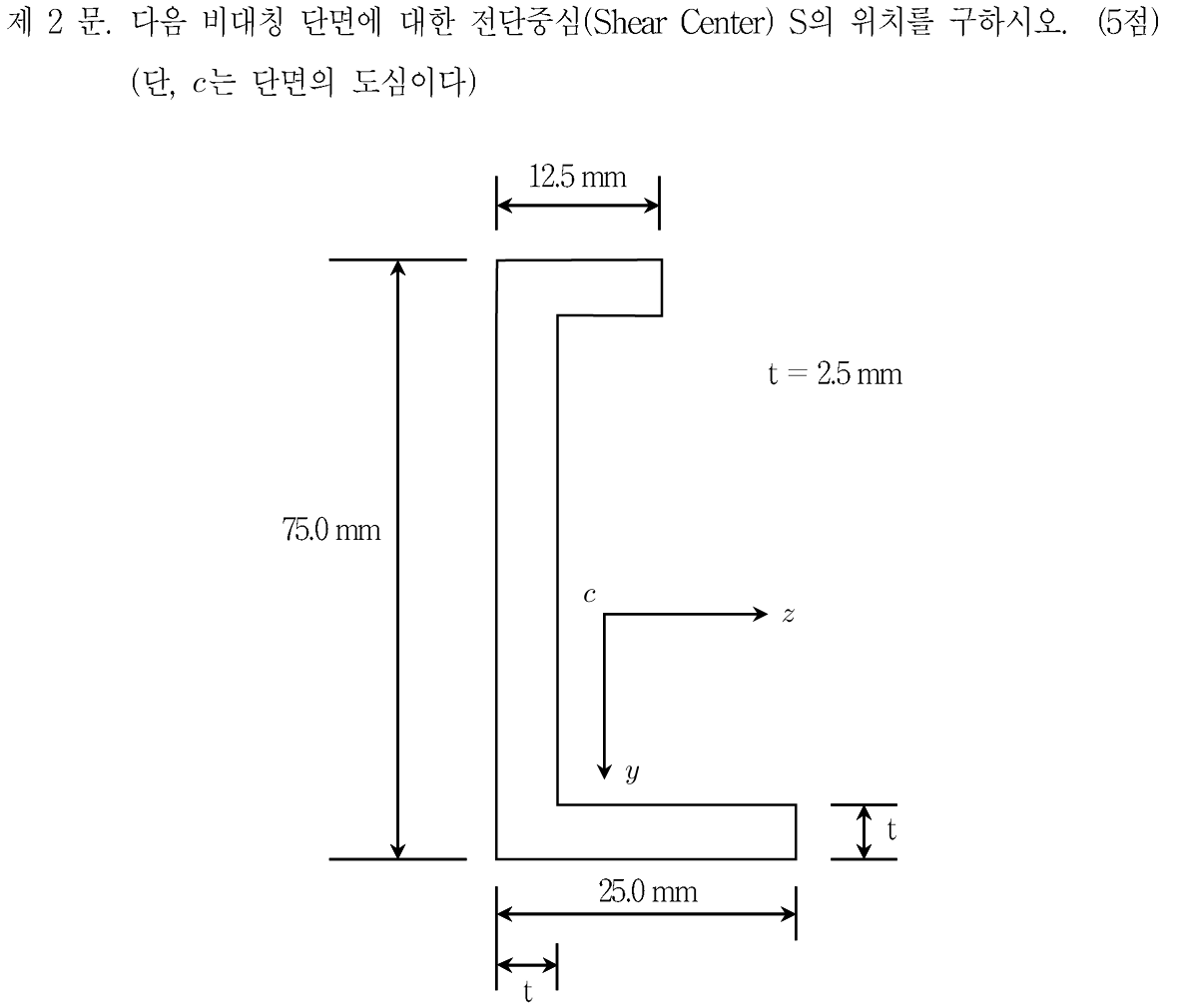 비대칭단면 전단 중심에 대해 (2009년 5급 구조역학 2번 문항)