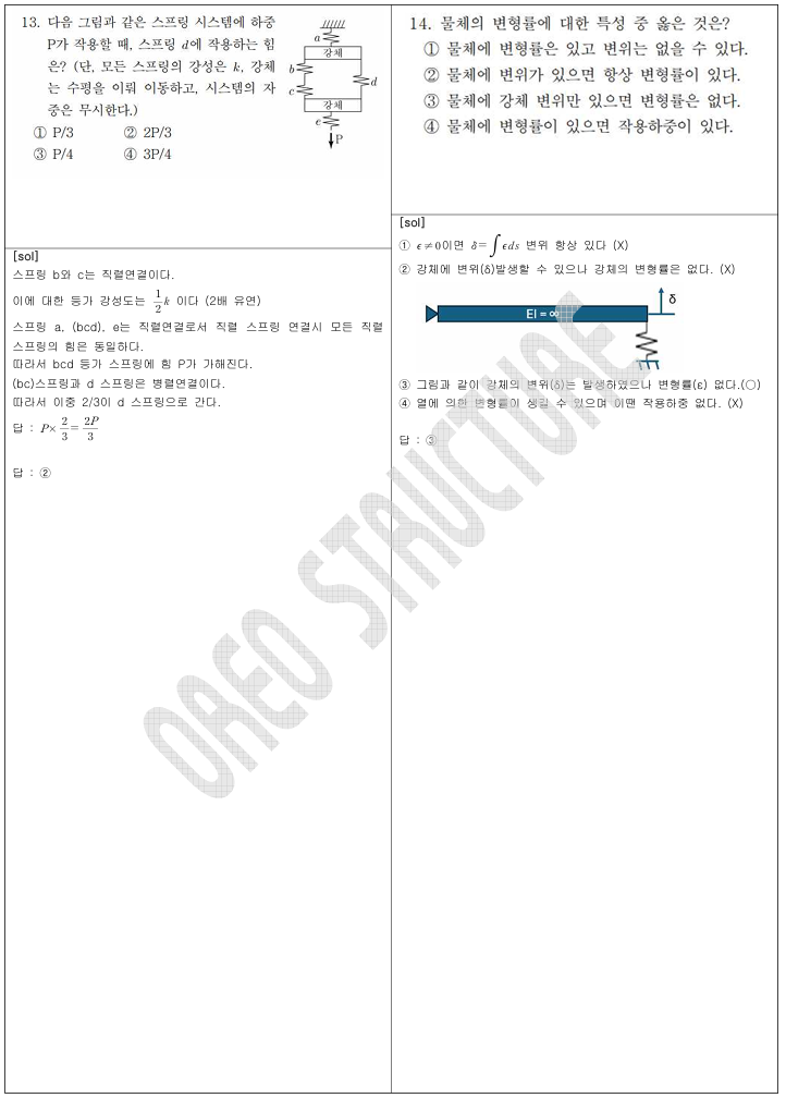 - 2번 문항은 구조의 안정·불안정·중립평형 (좌굴 개념)이 잡혀 있지 않으면 혼돈을 줄것입니다.